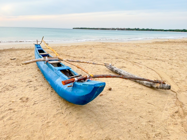 南洋のカヌーが備える腕木と浮体は、激しい外洋の波をいなす極めて合理的な仕組みです。船体から距離をとって浮体を配置することで、重心移動許容範囲を大幅に広げることができます。